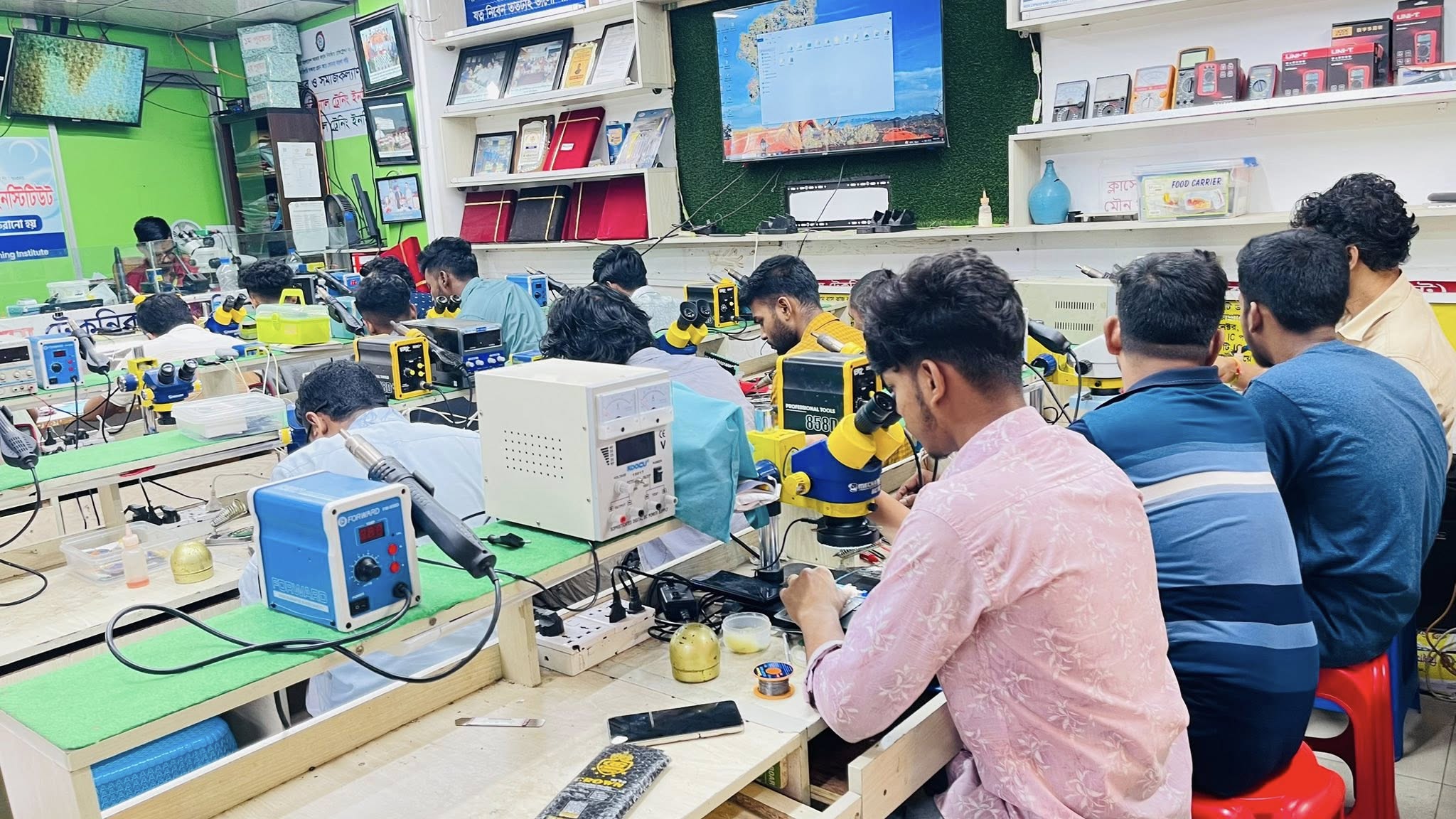 বিশ্বাস মোবাইল ট্রেনিং ইনস্টিটিউট-এর আধুনিক ক্লাসরুম, প্রশস্ত পরিবেশ, এবং ব্যবহারিক টুলসের পূর্ণ সুবিধা শিক্ষার্থীদের শেখার আগ্রহকে করে তোলে আরও গতিশীল। প্রতিদিনের ক্লাসে ব্যবহারিক প্রশিক্ষণের মাধ্যমে শিক্ষার্থীরা নিজেরাই ডিভাইস সার্ভিসিং প্র্যাকটিস করার সুযোগ পান।